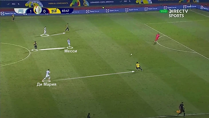 • Против Эквадора, команды, которая обычно отказывается от прессинга, Аргентина высоко встречала соперника. И сделала два мяча именно через прессинг. Месси не был самым активным (за него отрабатывал Ди Мария), но тоже участвовал (обычно перекрывал опорника).