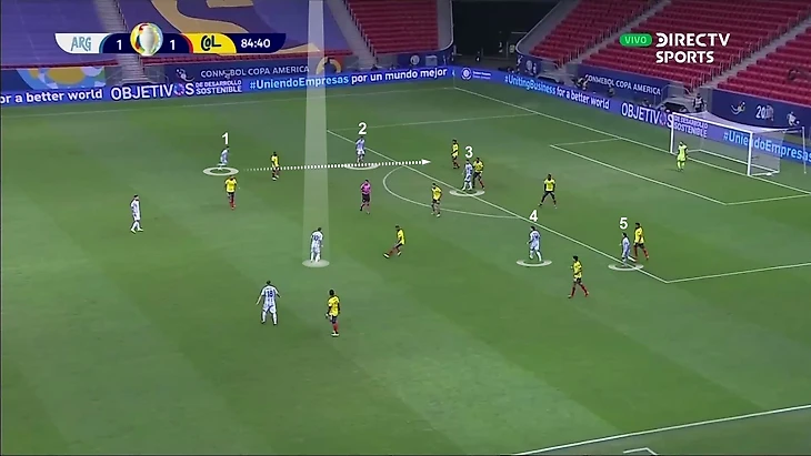 Степень важности Лео для игры Аргентины с мячом передает его вовлеченность в продвигающие передачи (в качестве отдающего или принимающего). Он единственный в сборной участвовал в более чем сотне продвигающих комбинаций; отрыв от второго места – 31.