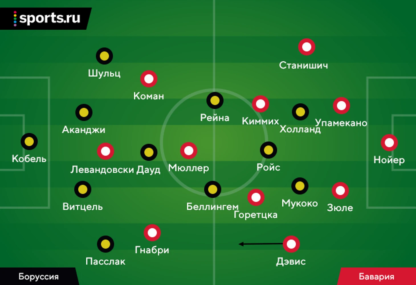 На ход встречи сильнее всего повлияло решение Марко Розе использовать схему 4-4-2 с ромбом в центре – именно оно открыло игру в обе стороны. В стартовом туре Бундеслиги «Дортмунд» использовал 4-2-3-1 – кажется, смена формации была именно приемом под «Баварию».