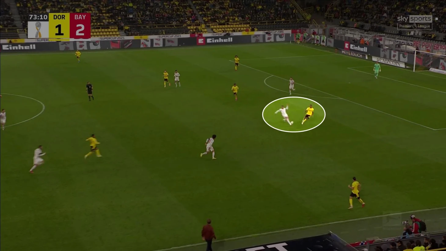 Пройти через центр при такой интенсивности было практически невозможно. Кажется, Юлиан Нагельсманн не ожидал эту схему и структуру прессинга. Тренер «Баварии» сказал, что давление было так хорошо организовано, что его команде нужно было реже пытаться его проходить через центр и чаще использовать верховые пасы.