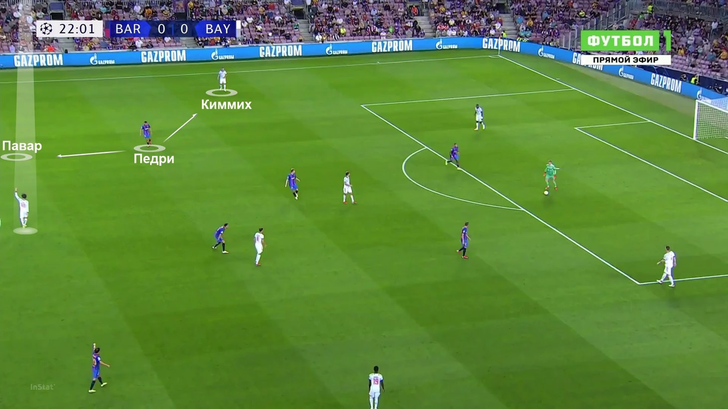 Не менее мучительными были попытки «Барселоны» прессинговать. Команда Кумана не отказывалась от давления на постоянной основе. Порой располагались весьма смело, но уровень организации прессинга был плачевным. Любое нестандартное открывание игроков «Баварии» ставило «Барсу» в тупик.