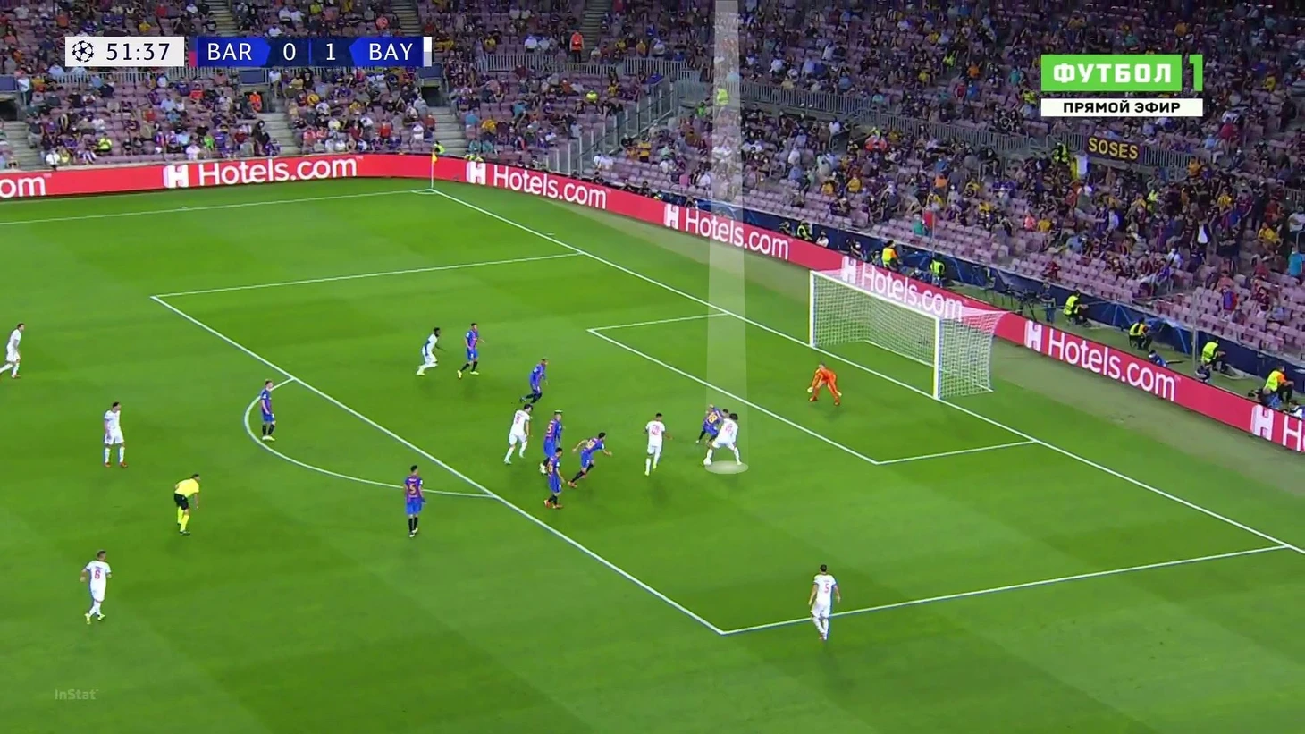 Проигрывая больше тайма на своем поле, «Барса» банально не могла выйти в атаку. Вот немного вопиющих цифр: 35% действий матча проходило на трети команды Кумана против 19% на трети «Баварии». Обычно такие показатели свойственны картине матча, в котором аутсайдер играет с топ-клубом.
