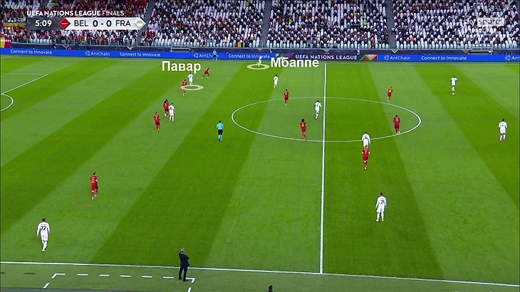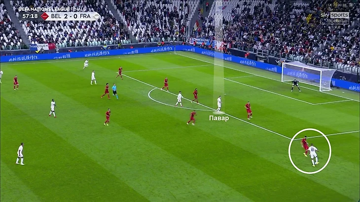Встречая его и реагируя на проход, бельгийские игроки смещаются ближе. В зоне, куда отправит мяч Мбаппе, возникает ситуация 3-в-3: