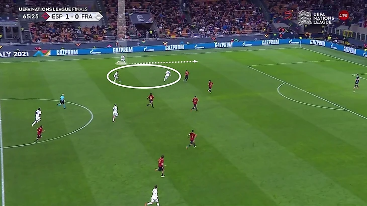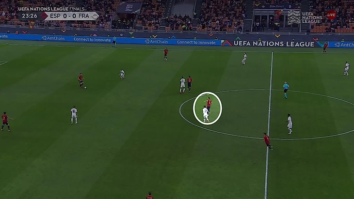 Первое получалось делать через мастерство. Из-за наложения схем Испании тоже было удобно прессинговать персонально, но иногда Франция разбивала эта давление через быструю игру в пас или выигранные индивидуальные дуэли. Здесь мастерства было больше, чем тактики.