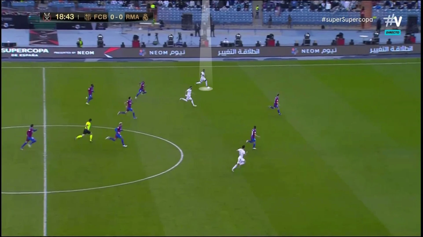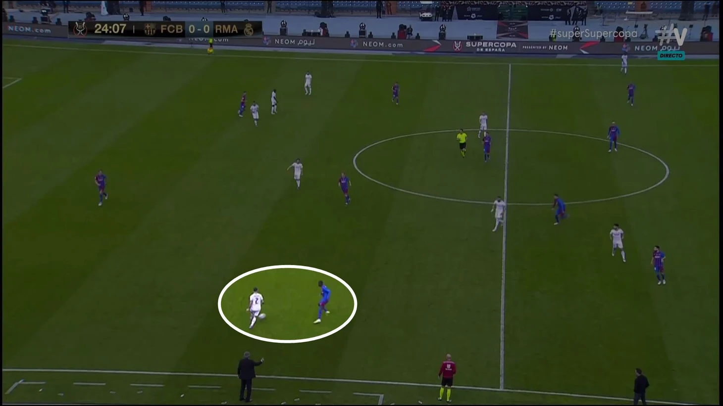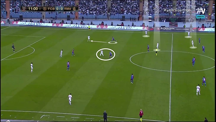 Иногда «Барса» вынуждала выбивать вперед из-за напора и интенсивности, но количественные преимущества были на стороне «Реала», поэтому не менее частой была ситуация с прохождением прессинга.