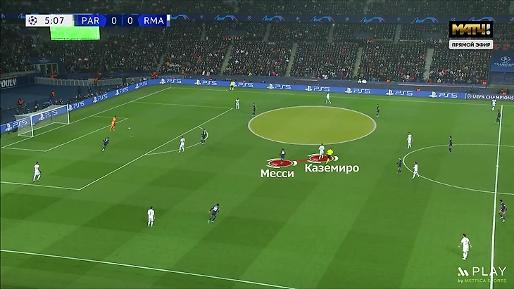 7. В прессинге «ПСЖ» все-таки была потенциальная уязвимость. Эпизодически она проявлялась, но вчера «Мадрид» не особо представлял, как ее использовать. Когда Каземиро делал рывки, Месси за ним не успевал. Бразилец распознавал свободные зоны и провоцировал такие эпизоды:
