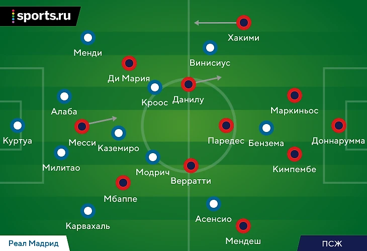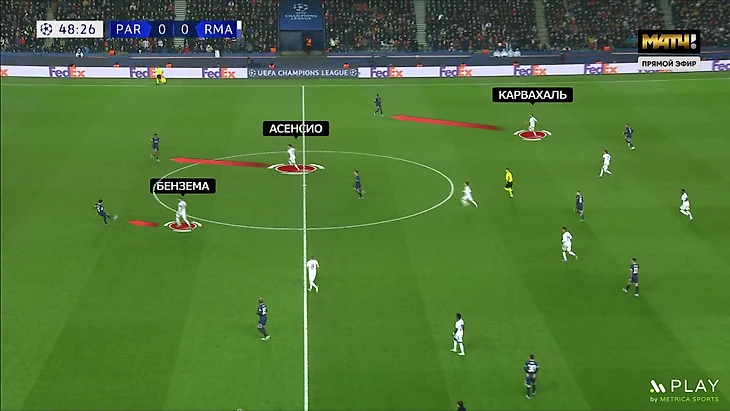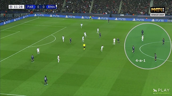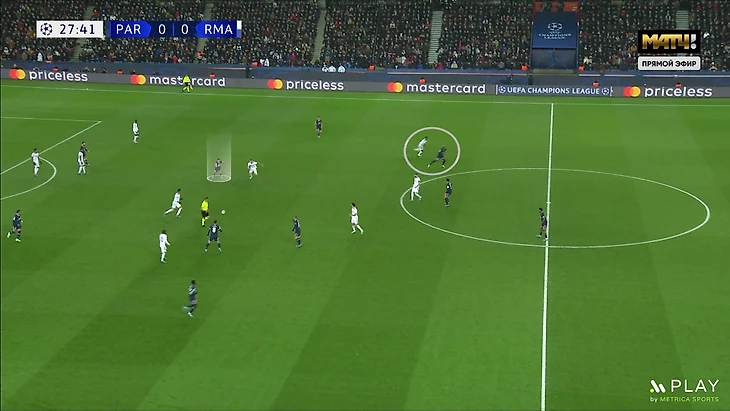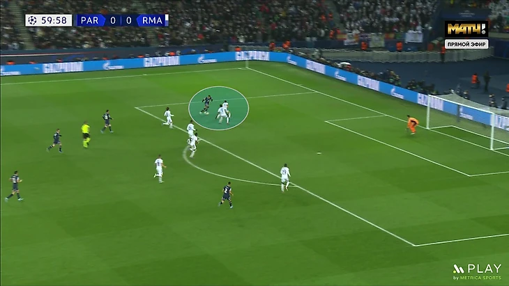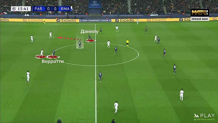 Второе – «Реал» привык выходить в фирменные контратаки через Винисиуса. Когда соперник терял мяч на левом фланге, добираться до этой зоны было намного труднее. Но вообще под сдерживание бразильца у «ПСЖ» был отдельный план.
