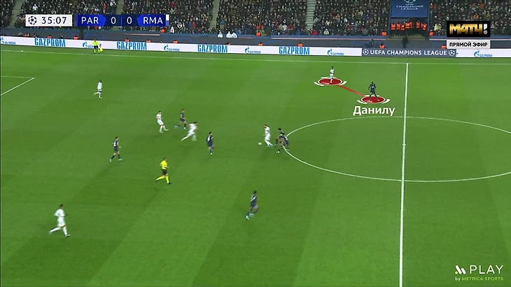 В первом случае Данилу был готов, но контратаку удалось убить в зародыше – Ди Мария отработал в контрпрессинге. Даже если «Реал» доставлял мяч до своего главного контратакующего игрока, то «ПСЖ» все равно был готов.