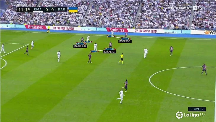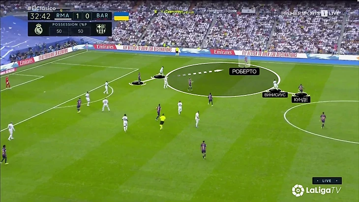 По ходу тайма Роберто стал смелее ходить в атаку. И через такую свободу вынуждал «Реал» реагировать, создавал численное преимущество «Барселоне». В индивидуальном плане он не делал ничего выдающегося, но в структурном это нагружало соперника – и косвенно помогало в острых атаках.