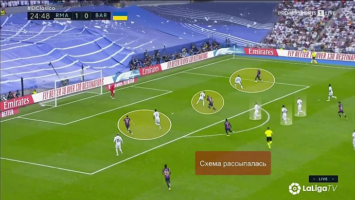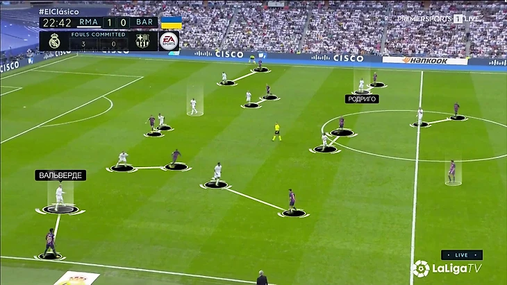 Резюмируя: справа игра открывалась в обе стороны – у «Реала» из-за качественного преимущества в ключевом исполнителе, у «Барсы» – из-за манипуляций персоналками в зоне, где нет машины вроде Вальверде, которая закрыла бы всех.