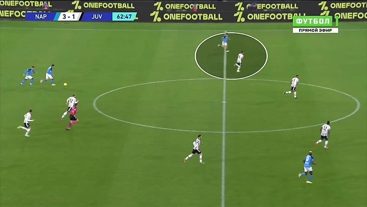 Минус такого подхода – свобода, которую получали крайние защитники соперника (Ди Лоренцо и Оливера). Плюс – выгодные соотношения против вингеров (Кварацхелия и Политано). Всегда была подстраховка. «Наполи» не был нейтрализован полностью: например, левый защитник Оливера пользовался свободой и отдал больше всех передач под удар (4). Но удары были не самыми опасными, а размен оказался выгодным, учитывая, как опасны могут быть вингеры «Наполи», если ведущими игроками атаки становятся они.