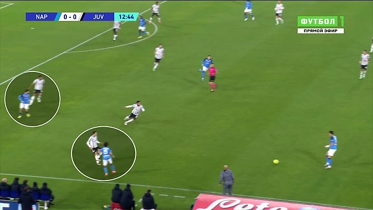 «Ювентус» периодически пытался идти в прессинг. «Наполи» уверенно разрывал плохо подготовленное давление. Проблемы были с моментом начала движения, с координацией и работоспособностью игроков.