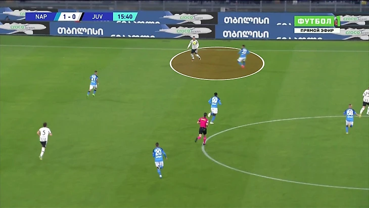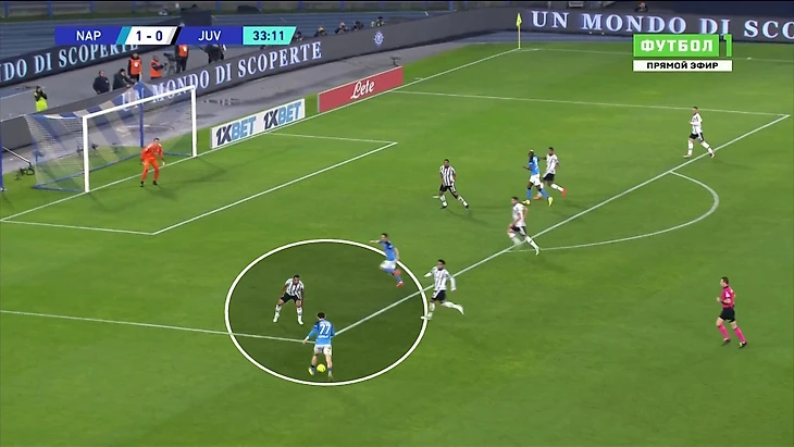 После гола Виктора Осимхена на 14-й минуте «Наполи» оказался в комфортном положении. Если соперник дальше избегает прессинга, то время работает на «Наполи». Если идет в давление, то «Наполи» получает возможность эксплуатировать свою самую сильную сторону.