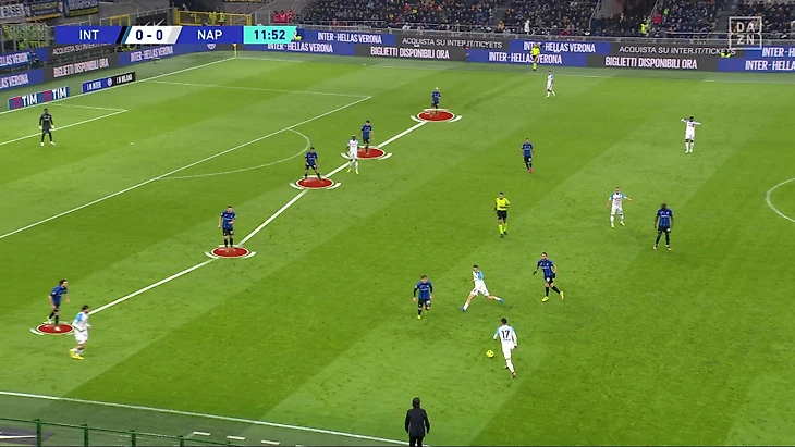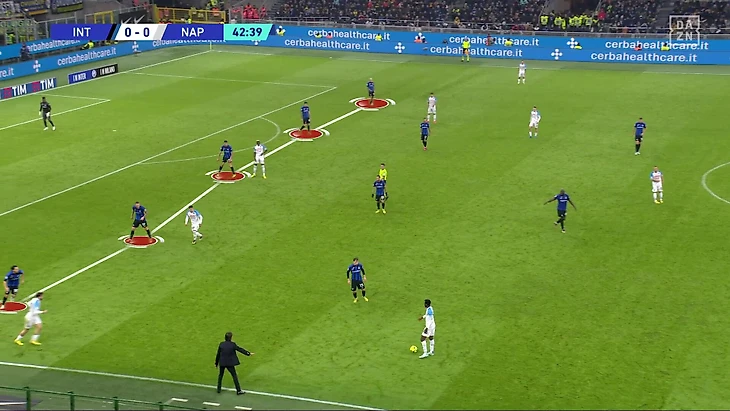 «Интер» минимизировал возможности «Наполи», передав мяч сопернику (64%). Даже на своей половине команда Симоне Индзаги действовала пассивно. Держала пятерку защитников без выдвижений в эпизодический прессинг:
