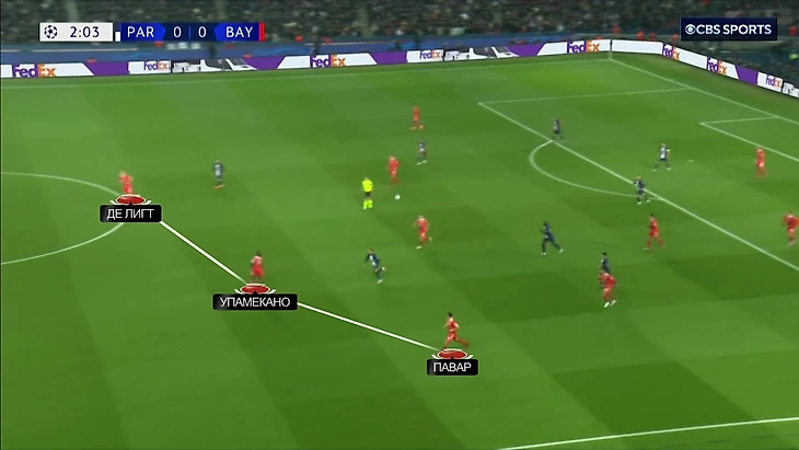 Катализатором стал выход Мбаппе, который сопровождался изменениями в схемах. «Париж» теперь действовал более открыто в центре (что неизбежно при звездной тройке в полном составе). Интересной была и реакция «Баварии» – тройка центральных защитников перестроилась. Правым центральным стал Упамекано (под Мбаппе), Павар ушел на левый край, Де Лигт расположился в центре. То есть у каждого из них изменились позиции относительно стартовой: