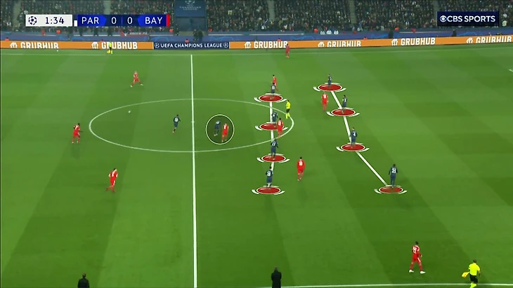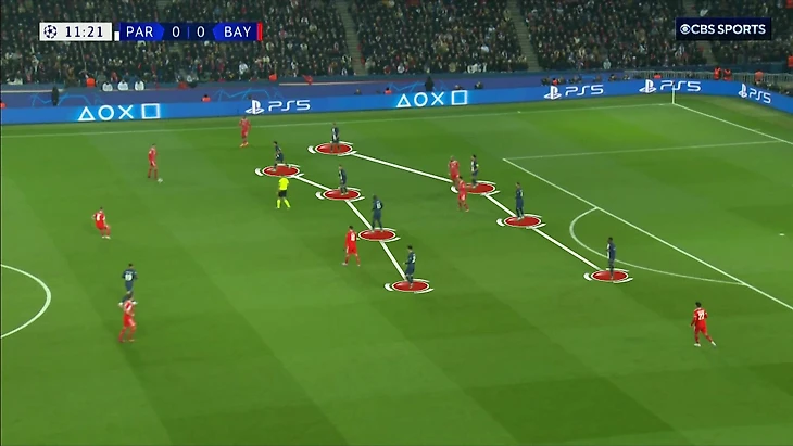 «Бавария» максимально интенсивно накрывала все короткие варианты, а «ПСЖ» не мог сыграть дальним пасом. Эти факторы множили друг друга. Понимая, что нет угрозы дальнего паса, «Бавария» шла в давление еще более смело.