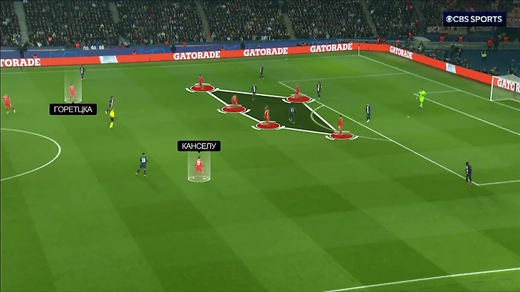 Ключевые зоны перекрываются. Из-за объема давления кое-какие активности сопернику позволяются, но даже они нейтрализуются давлением в момент удара. «ПСЖ» очень здорово реализовывал эту тактику.