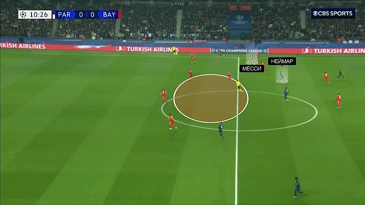 Открывания за спину предлагали только фланговые игроки. Для баланса в этой стадии «ПСЖ» нужно было преодолевать давление и сохранять варианты впереди. Совмещать это вообще не получалось: либо Месси и Неймар оставались выше, а «ПСЖ» попадал под прессинг-каток «Баварии», либо они опускались и удерживали мяч, но без продолжения.