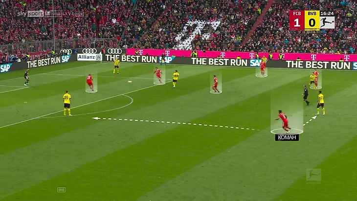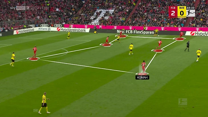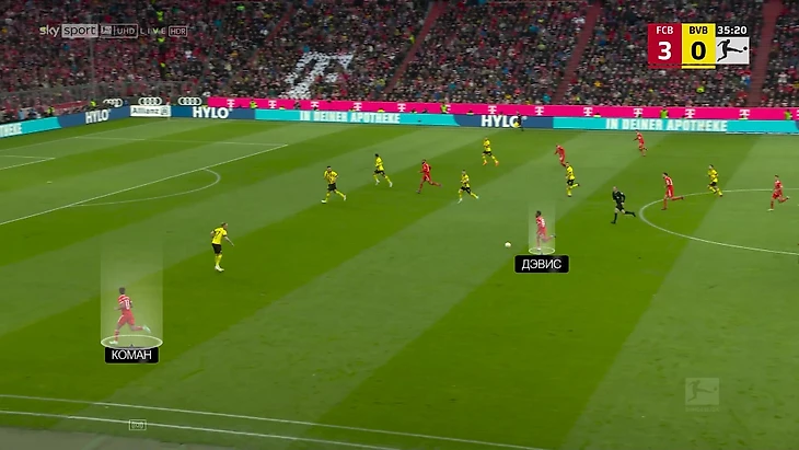 Результат сделали в первую очередь описанные выше элементы, но с точки зрения интересности нужно выделить еще одну деталь: как «Бавария» заполняла фланги. Слева Дэвис регулярно ближе к центру, а Коман давал ширину: