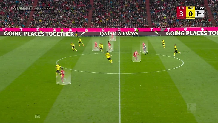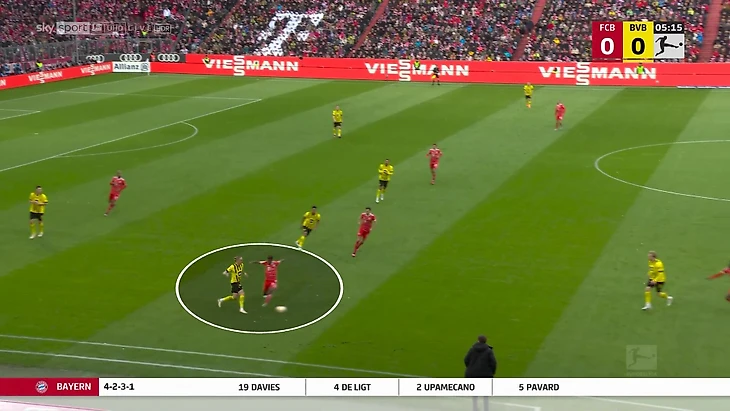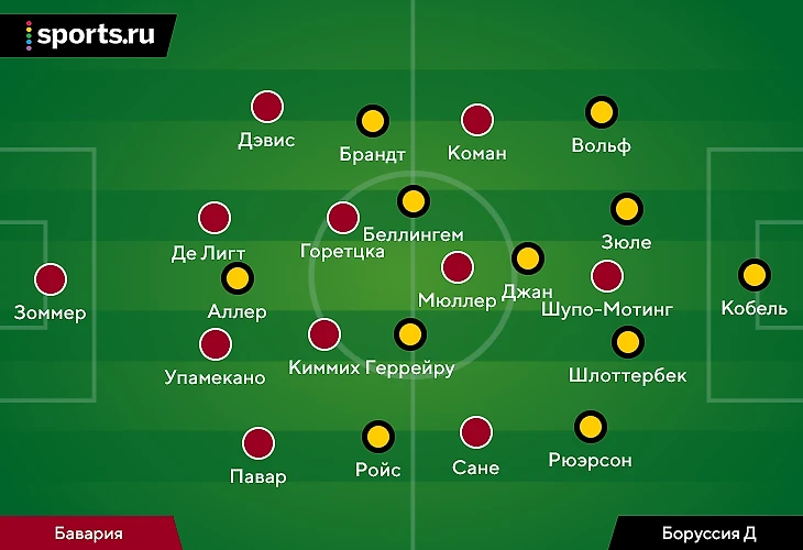 Организованность и точные акценты при прессинге у «Баварии» контрастировали с тотальным хаосом у «Дортмунда». Слишком часто гости шли в давление большим количеством, но вообще без синхронности, слаженности и компактности. В результате после пары передач под давлением «Бавария» оголяла такие дыры: