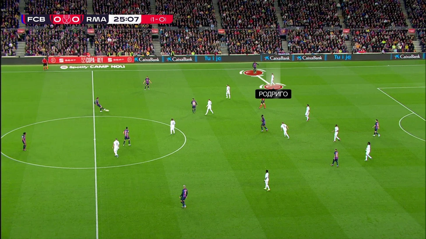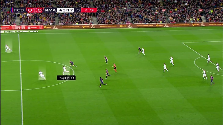 Эпизод перед первым голом, где сначала «Барса» создала шанс через Бальде, а потом «Мадрид» связал контратаку с участием Родриго – классная фиксация игрового рисунка в одном отрезке матча.