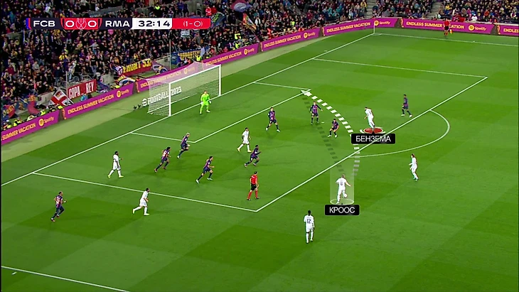 «Реал» забил два гола и создал опасные моменты через игру на пространстве. Контратаки были даже острее обычного. Две ключевые причины – разбалансированность в зоне Родриго/Бальде + счет во втором тайме, толкнувший «Барсу» еще больше рисковать (и более хаотично готовить собственные атаки). Винисиус и Бензема грандиозно решали в эпизодах.
