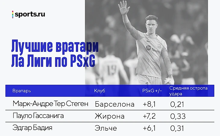 Третий аспект – форма Тер Стегена. Немецкий вратарь спас команду от 8,3 голов относительно среднего кипера: