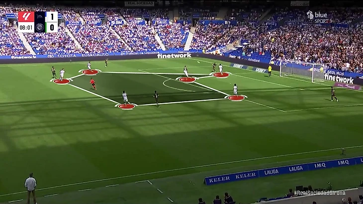 Для «Сосьедада» такая схема – ключ к реализации главных принципов, которые предполагают контроль и постоянное насыщение чужой опорной. Это можно делать и в других формациях, но в этой естественнее всего.