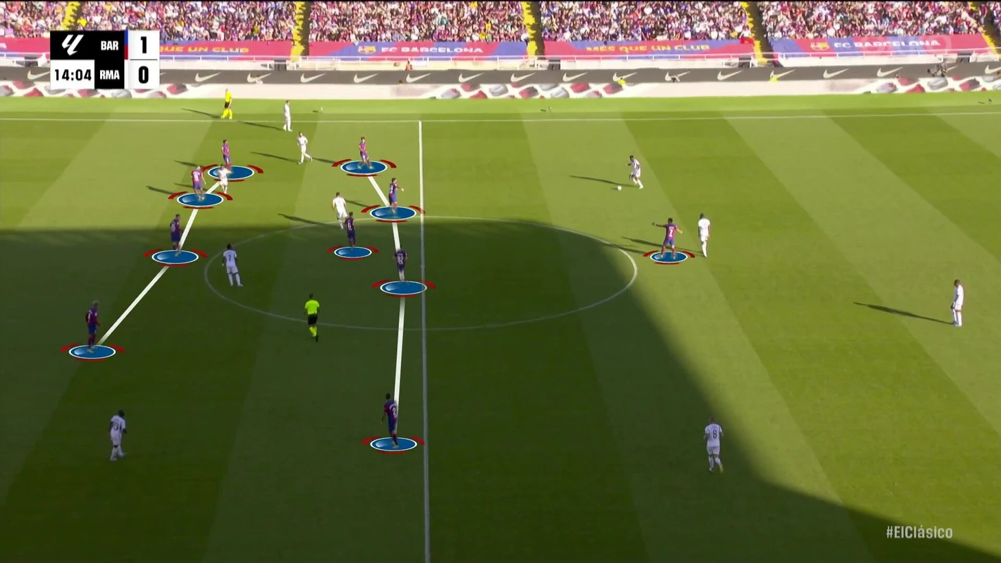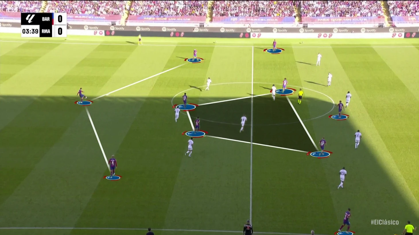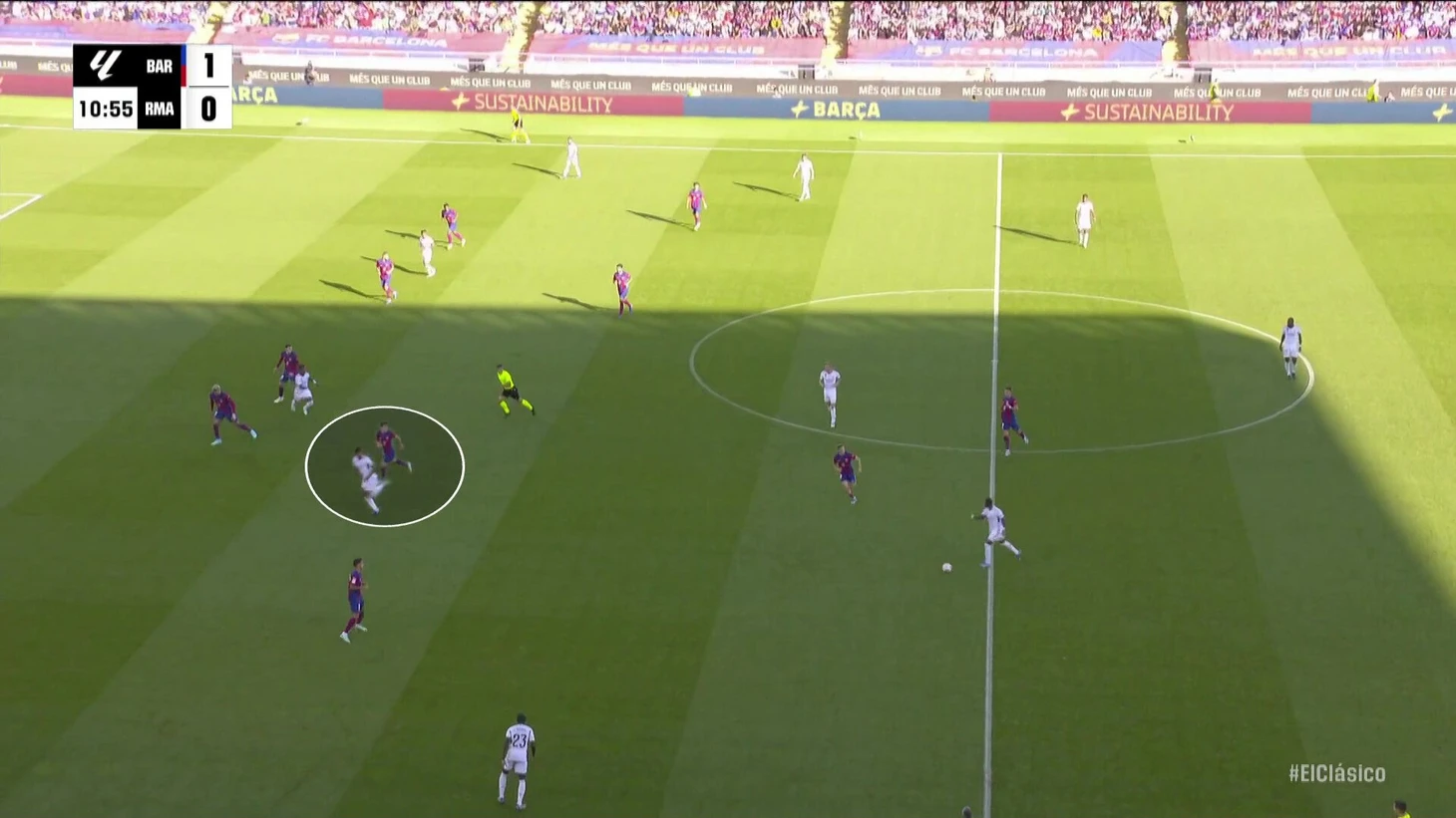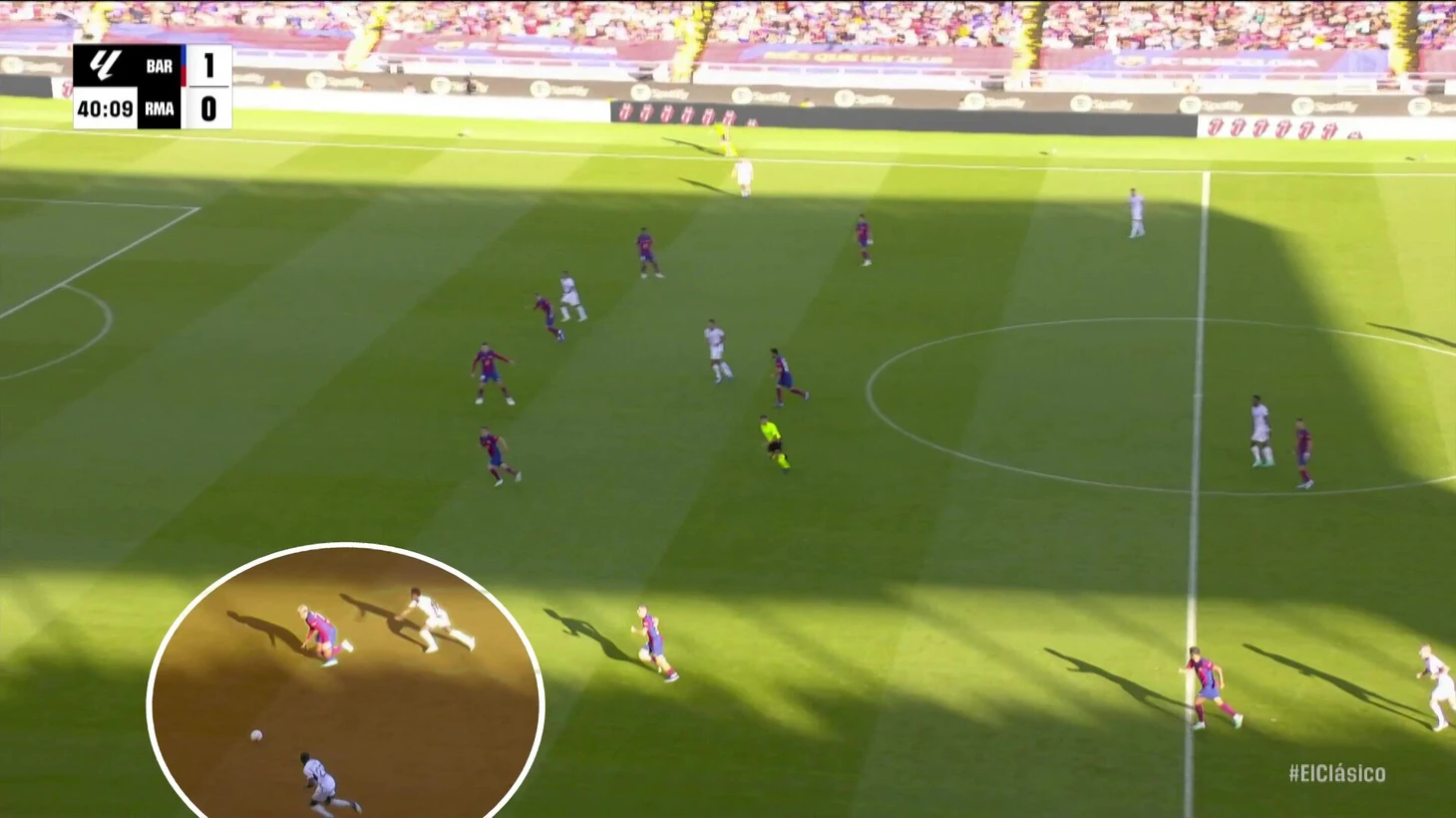 К перерыву команды подошли с хорошей взаимной нейтрализацией, но при счете в пользу «Барсы» на протяжении почти всего тайма. «Реал Мадрид» смотрелся невыгодно, хотя многие аспекты стартового плана Анчи работали – просто задачи изменились не в его пользу. Итальянец отреагировал уже в перерыве.