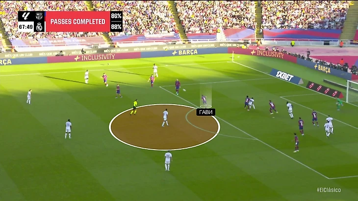 Хави доверил Гави персональную опеку Беллингема – так родилась главная дуэль матча. Их позиции по схемам сходились, но Гави преследовал Джуда даже в нестандартных ситуациях. Например, шел до упора на чужую половину поля: