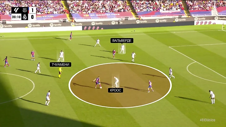 В первом тайме Беллингем брал на себя Гави, а Кроос мог оставаться глубже при прессинге. Теперь «Мадрид» выбирал рискованный сценарий, в котором никого не оставалось в опорной на случай провала.