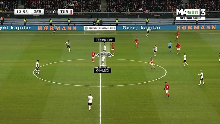 Еще интересным выглядит совместное использование Йозуа Киммиха и Илкая Гюндогана в опорной зоне. Оба грандиозно играют в пас, но могут выходить в опорной только при предельной степени доминирования или с более оборонительным партнером.