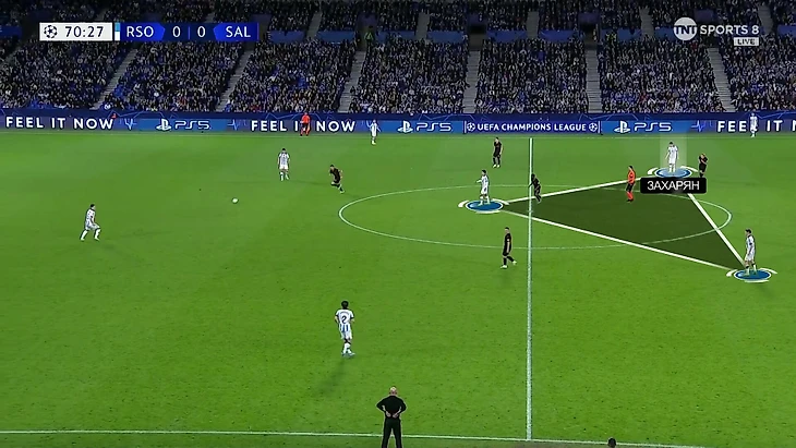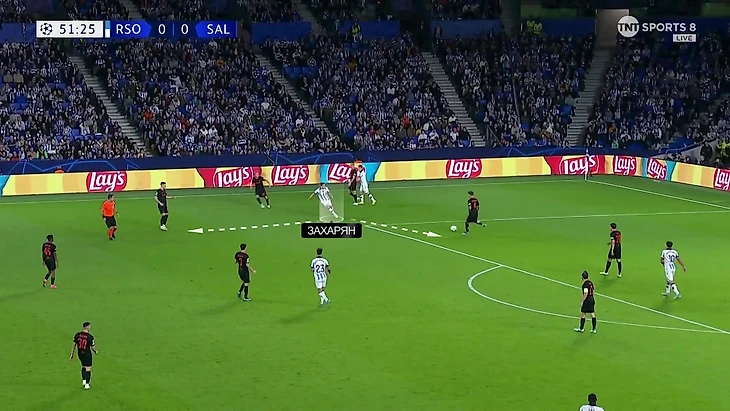От Захаряна требовалось держать широкую позицию. Как многие структурные команды, «Сосьедад» старался создавать пятерку в последней линии. За ширину в ней отвечали Захарян и Мохамед-Али Чо:
