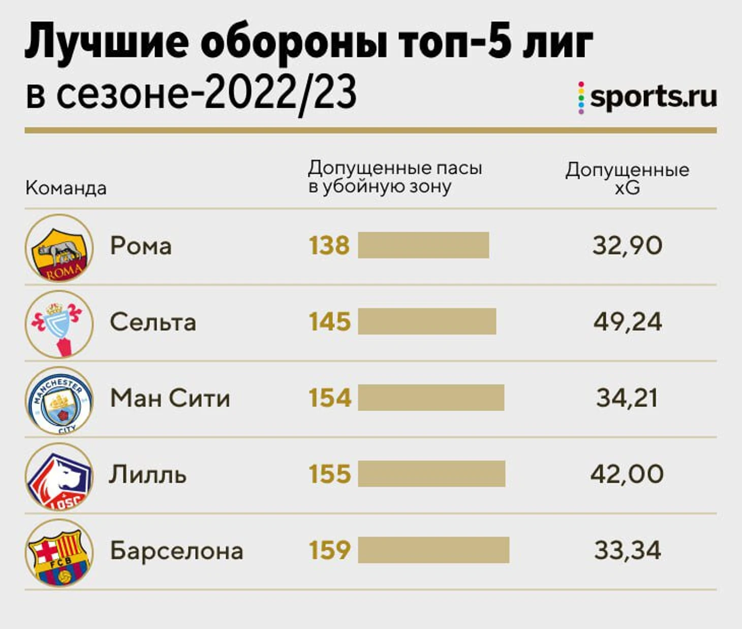 Команда Моуринью комбинировала низкий уровень допущенной угрозы с минимальным количеством допущенных пасов в острые зоны. Только «Ман Сити» и «Барселона» совсем в другом стиле совмещали эти вещи.