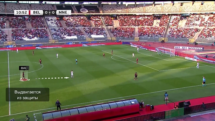 При розыгрышах Бельгия тоже использует тройку. Один из крайних защитников идет в атаку, а второй остается рядом с центральными: