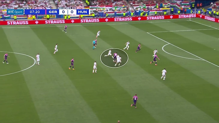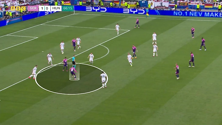 Его роль в сборной Германии Нагельсманна – правый вингер при обороне и одна из трех свободных десяток при владении. Такая интерпретация раскрывает его лучшие качества. В чужой опорной зоне эпизоды стягивания на себя соперников имеют большую ценность, а свобода и ротации с партнерами позволяют ему демонстрировать высокий уровень тактического IQ. Плюс наличие сразу трех десяток в схеме увеличивает вероятность того, что созданные Мусиалой зоны уж точно оголят.
