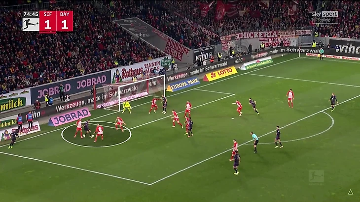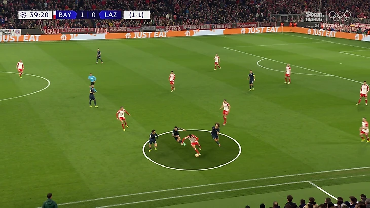 Полузащитник «Баварии» грандиозно владеет искусством удержания мяча в условиях ограниченного пространства, тем самым упрощает жизнь партнерам. Как правило, окружение из трех оппонентов на маленьком участке – вообще не проблема для Джамала. Он вытягивает их на себя, а еще группа игроков следит и держит в голове подстраховку, теряя изначальные ориентиры. Получаются иньестообразные моменты (пускай с общей камеры они выглядят менее волшебно, чем на крупных фото):