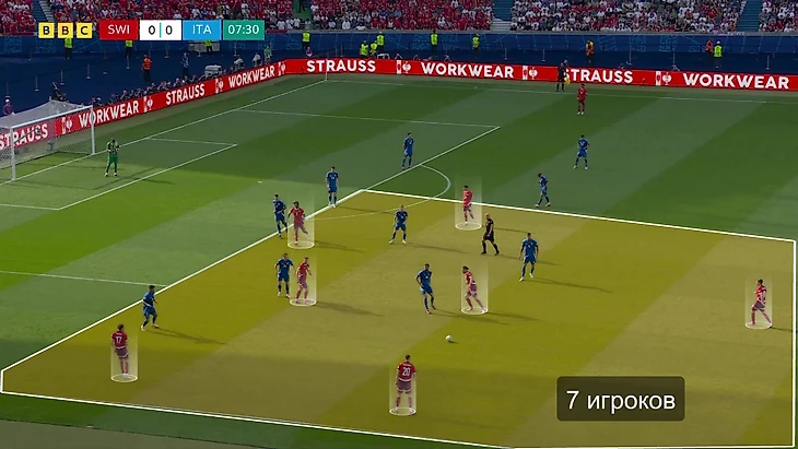 Команда учитывает ключевые зоны соперника и адаптирует под них схему. Для Германии с особым упором закрывали продвижение через центр, а Италии не давали создавать перевес на флангах.