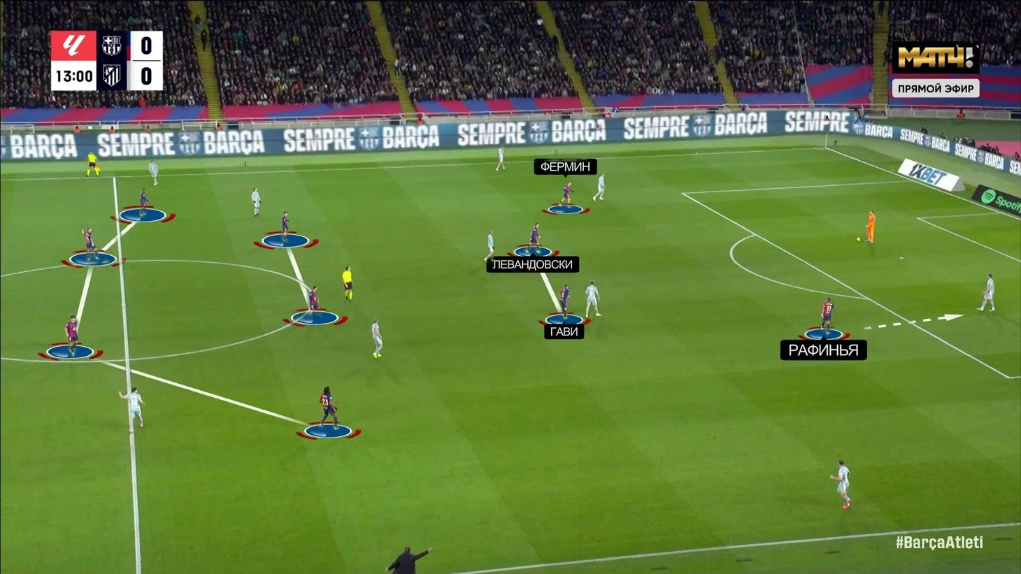 План «Барсы»: игра первым номером с вариативностью на флангах. Слева больше комбинаций, а справа Рафинья в роли Ямала. Этот план позволил зажать «Атлетико» и создать массу моментов.