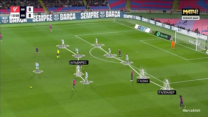 В предматчевом комментарии Симеоне высказал предположение, что выход Гави в старте связан с желанием «Барселоны» еще более интенсивно душить прессингом. Резонное замечание. Давления было важным инструментом, так как «Атлетико» не отдавал мяч сразу.