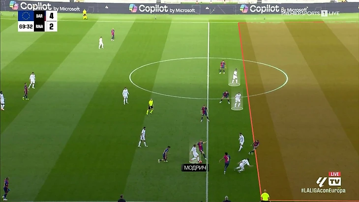 «Реал» весь матч тестировал соперника на пространстве. Естественное продолжение особенностей команд: у «Мадрида» в атаке скоростные и освобожденные исполнители; у «Барсы» – радикально высокая линия, которую команда не опускала даже при двух мячах преимущества.