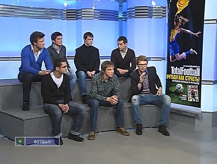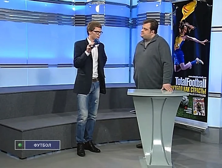 Было очень волнительно: ты сидишь за огромным столом напротив огромного Васи, все на тебя смотрят. Вася задавал совершенно разные вопросы, раскидывал по эмоциональному диапазону, пытался вывести из себя. Еще там был Александр Шмурнов, Анна Дмитриева, Дмитрий Чуковский [директор спортивных каналов «НТВ Плюс»], Денис Казанский и Сергей Акулинин.