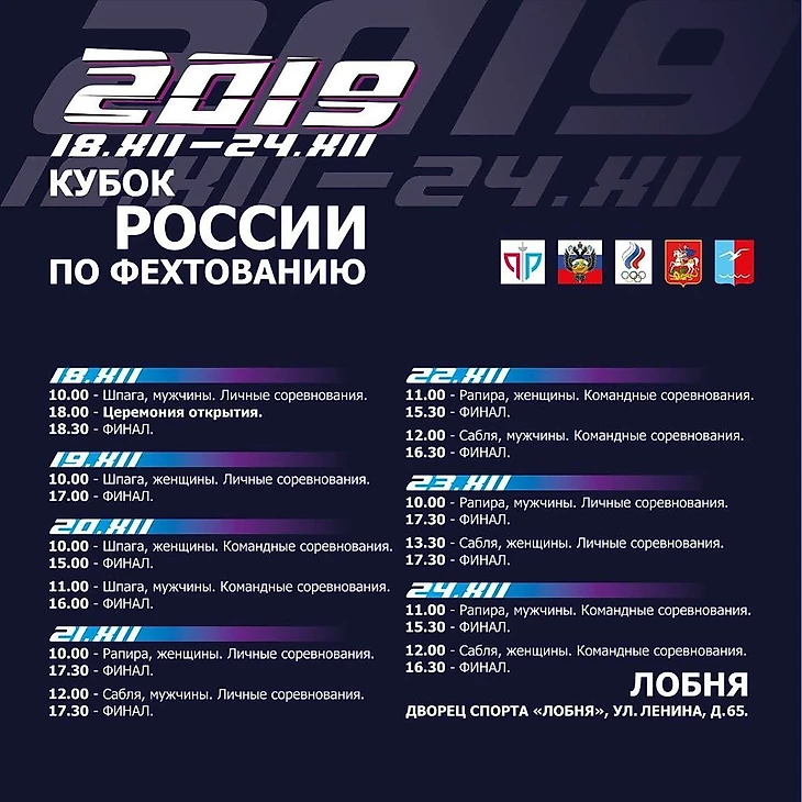21 декабря - рапира, женщины / сабля, мужчины (личное первенство)