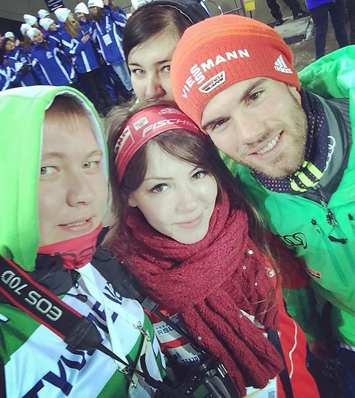 За пару недель до чемпионата я начала списываться с немецким биатлонистом второго эшелона Штеффеном Бартшером. Объяснила, что я журналист, люблю писать о малоизвестных спортсменах – об известных и так пишут, про них все всё знают. Он писал, кто в составе сборной Германии едет на чемпионат, отправлял прогноз погоды, я со своей стороны пообещала по приезду внедрить немцев в российскую культуру и помочь с коммуникацией. Что мне нравится в европейском менталитете – европейцы всегда открыты к общению с иностранцами, и им приятно, когда говорят на их родном языке. Практически сразу после моего приезда Бартшер провёл экскурсию по стадиону, мы разговаривали о Путине, Меркель о немецком и русском языках. Так, у меня появился бесплатный репетитор немецкого, который я учу уже столько лет. Лучший способ выучить иностранный – это общаться с носителем языка.