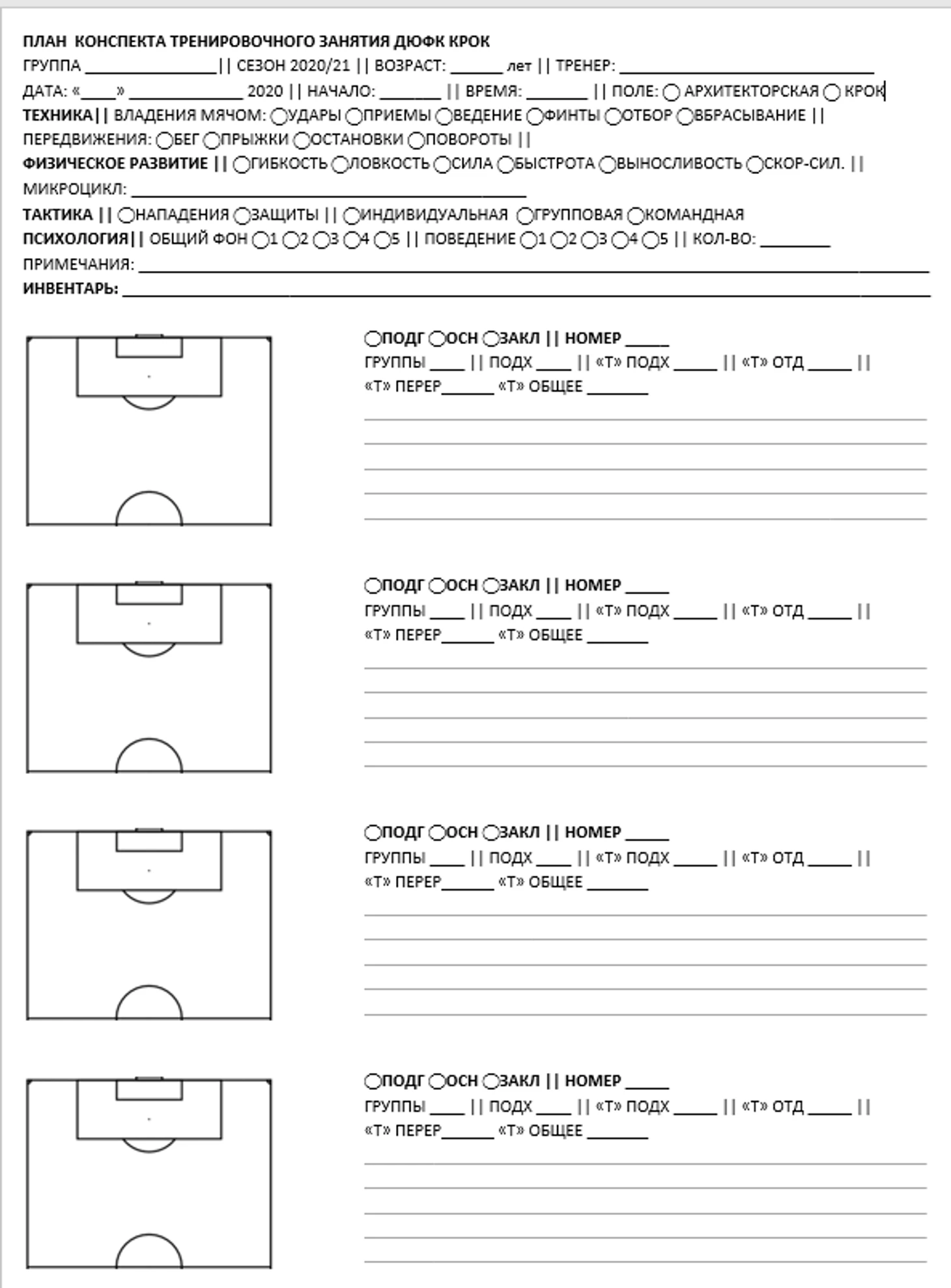 План-конспект тренировки
