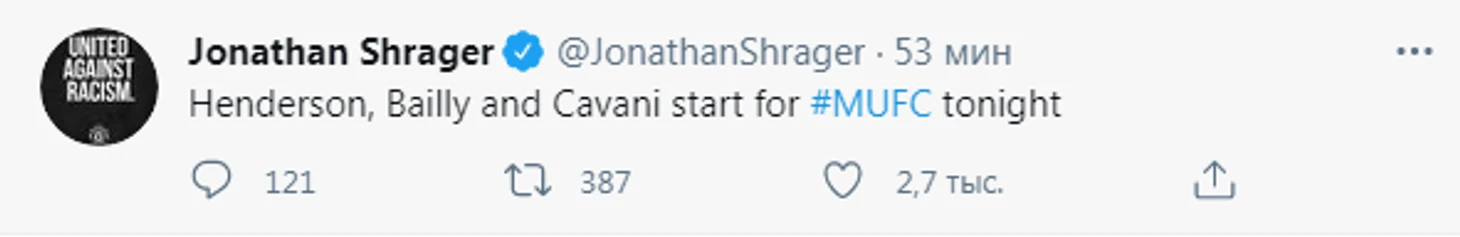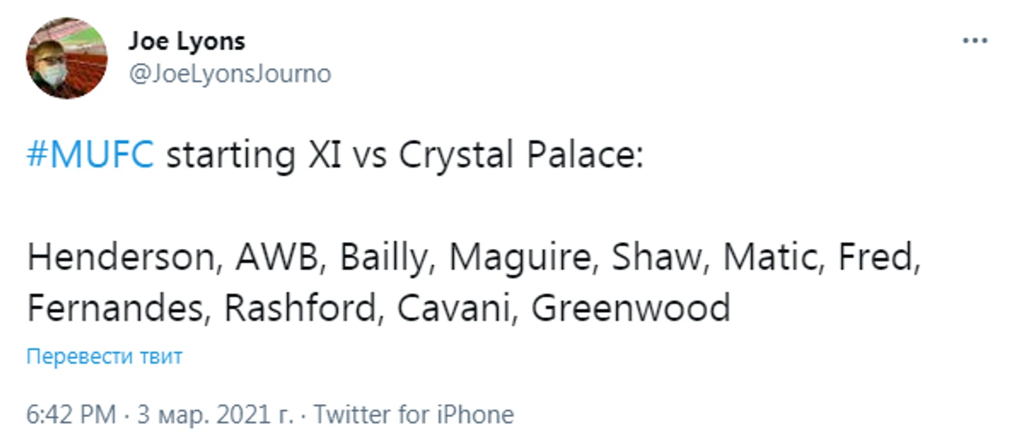 До публикации информации Шрагера, малоизвестный инсайдер Джо Лайонс сообщил весь состав "красных дьяволов" в их сегодняшнем гостевом мачте против "Кристал Пэлас".