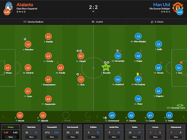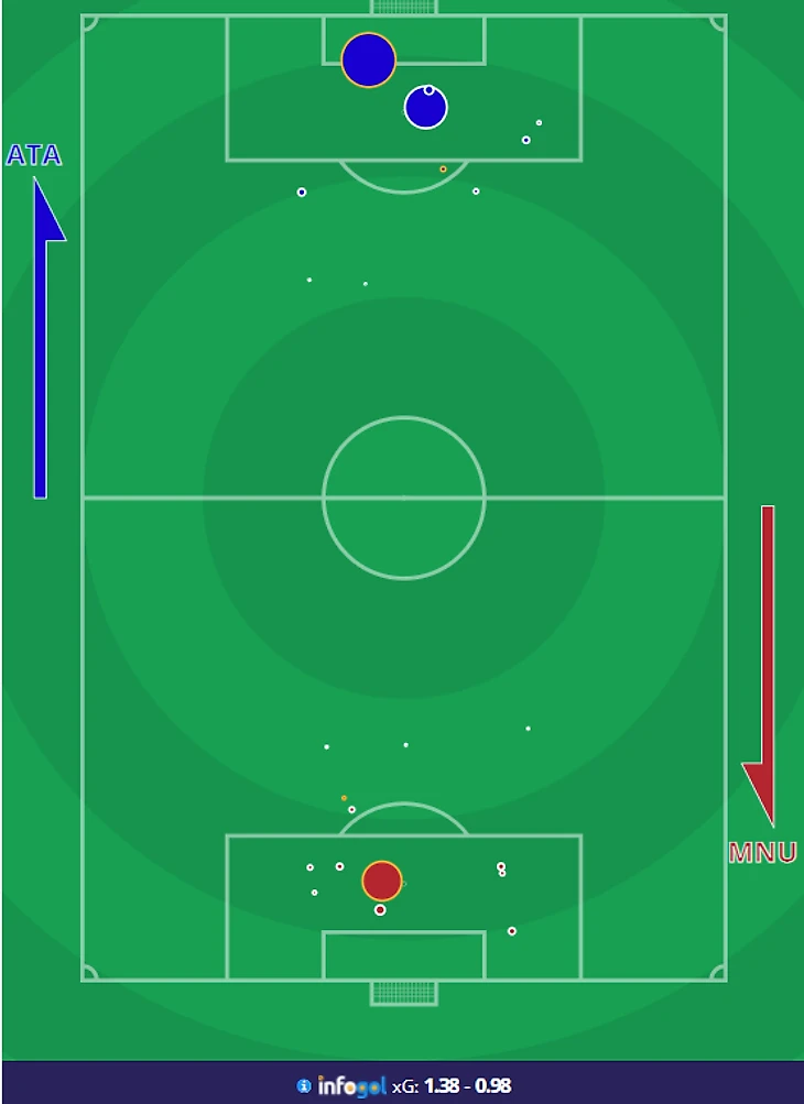 План Сульшера на сегодняшнюю игру предполагал то же самое, что и в последнем матче (Рэшфорд чаще игра на позиции десятки, а Бруно больше оказывался в центре штрафной), но это закономерно не сработало. Аталанта - это вам не кризисные Шпоры. Аталанта - структурно собранная команда с налаженной игрой и добротным коучем. Итальянцы следуют задуманному от начала и до конца матча, прекрасно осознавая, какие плоды это принесет. Конечно, далеко не всегда у них это получается, но система есть - это главное.