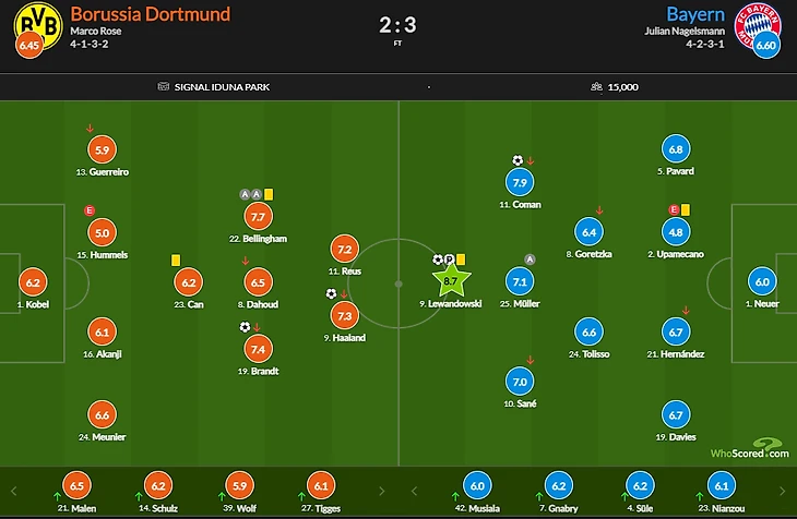 В этом увлекательном шоу Бавария логично оказалась сильнее. Не только потому, что состав значительно круче и дороже, чем у Шмелей, но и потому, что у нее куда больше логики в игре. Нагельсманн внес некоторые коррективы в Баварию Флика, но заметить их можно лишь в том случае, если ты пытаешься их отыскать.