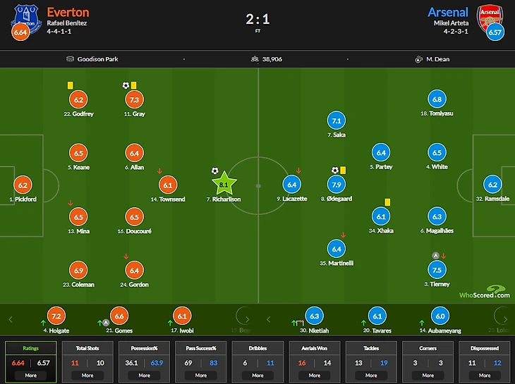 «Эвертон» по делу разобрался с «Арсеналом». Рафа сбавил градус давления