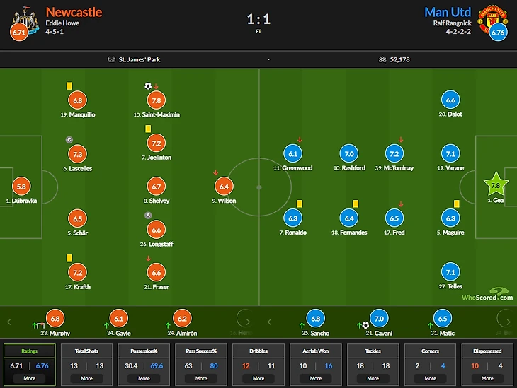 Ньюкасл сегодня - это стильно и смело. Хау хоть и разразился хвалебной одой Рангнику перед матчем, но никакого пиетета на поле и близко не было. Сороки превратились в коршунов, которые, как мелких цыплят, проглатывали игроков МЮ. В Варана все камни кидать не стоит, ведь он только восстановился после тяжёлой травмы, хотя он вполне мог привезти куда, чем один пропущенный.